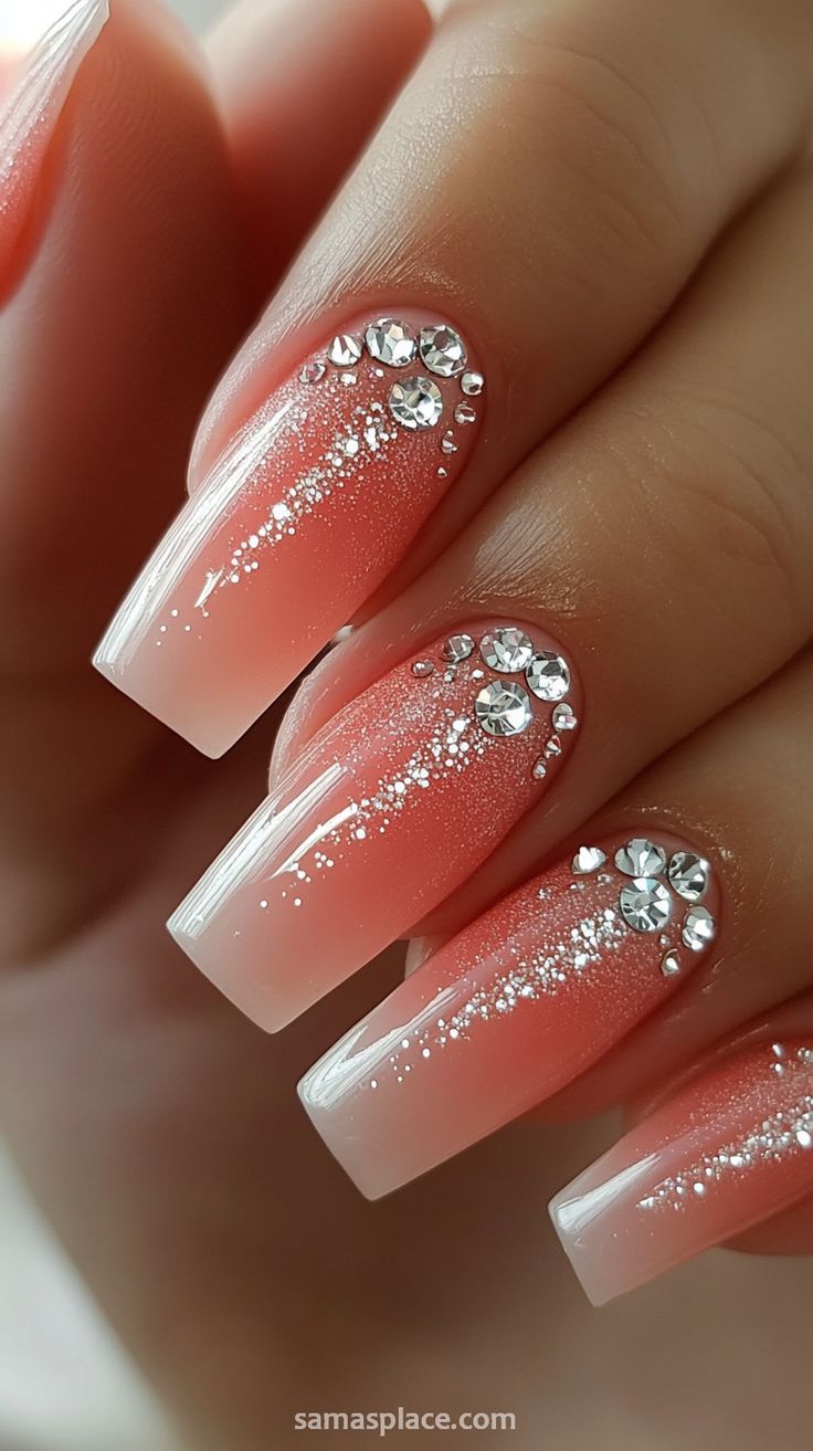 For those who love a bit of drama, ombre techniques blending pink into nude or white create a seamless fade that’s both trendy and elegant. You can also play with geometric patterns, abstract brushstrokes, or swirls in metallics to give your nails a contemporary twist.