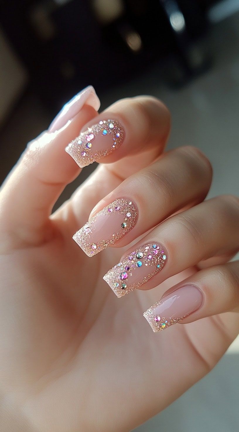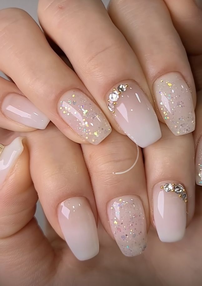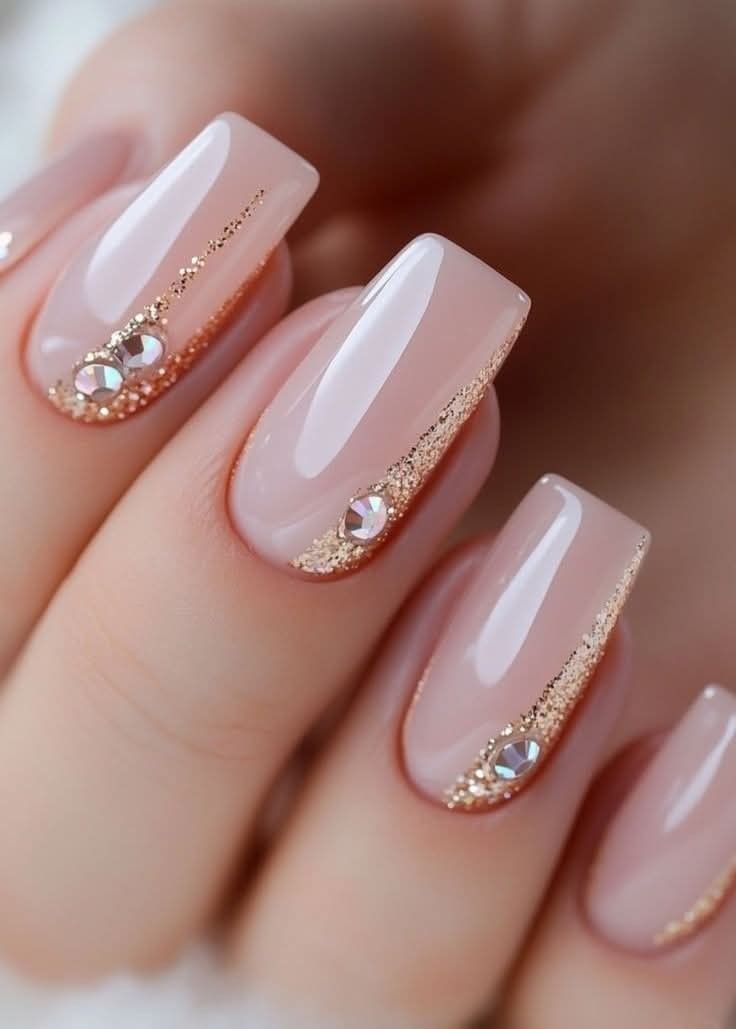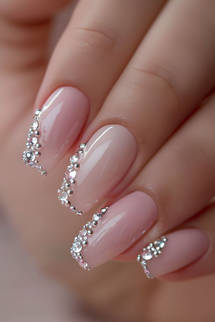 If you’re a fan of elegant, low-key looks, nude nails with subtle rhinestone detailing deliver just the right amount of sophistication. A pale pink or beige base gives the perfect canvas for tiny crystals placed strategically on one or two fingers. It’s a refined option that’s equally suited for office settings and romantic evenings.