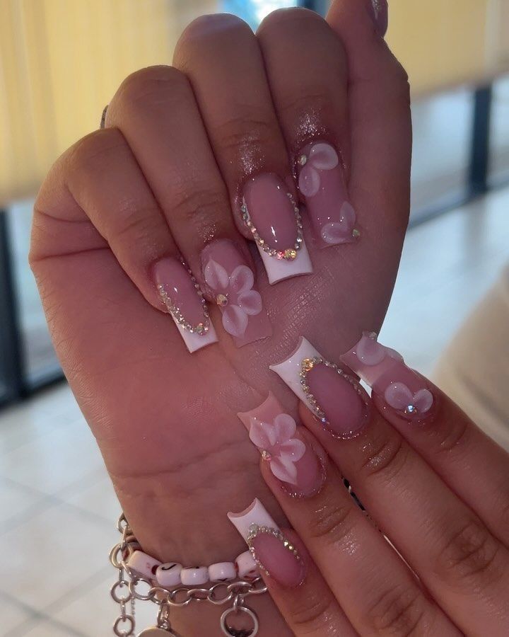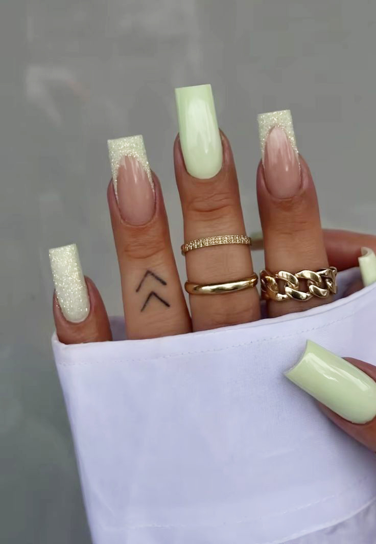 For those who want all eyes on their nails, glitter and rhinestones are your best friends. Square acrylic nails provide a perfect platform for intricate embellishments. Whether it’s an accent nail covered in rhinestones or a full set dusted with shimmering glitter, the square shape keeps the overall look balanced and sleek.