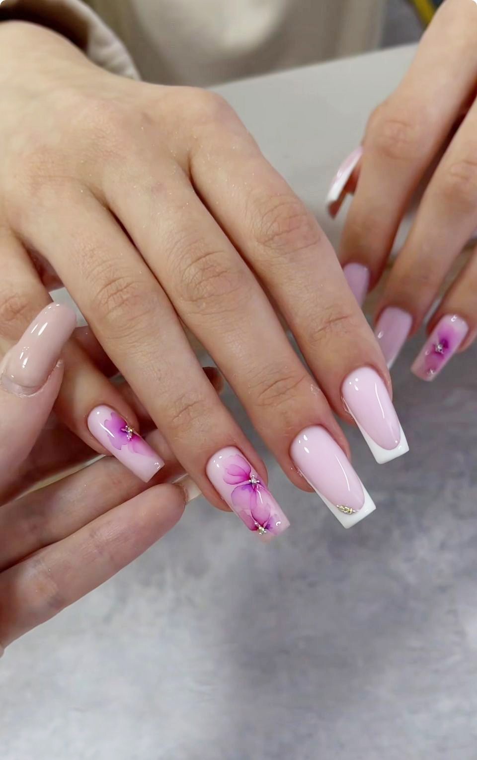 A modern take on a timeless favorite, French tip square nails are effortlessly chic. The crisp white tips against a nude or pink base look even cleaner on square nails due to the straight edges. For a twist on the classic look, try colored French tips—such as gold, lavender, or even glitter—for a fresh and contemporary vibe.