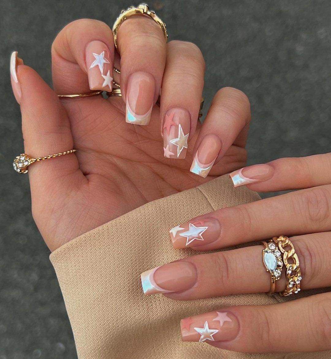 Try nude-to-white ombre for a bridal or romantic look, or go bold with pink-to-purple or blue-to-silver fades. Ombre styles are especially popular for longer square nails, where there’s more surface area to showcase the gradient effect.