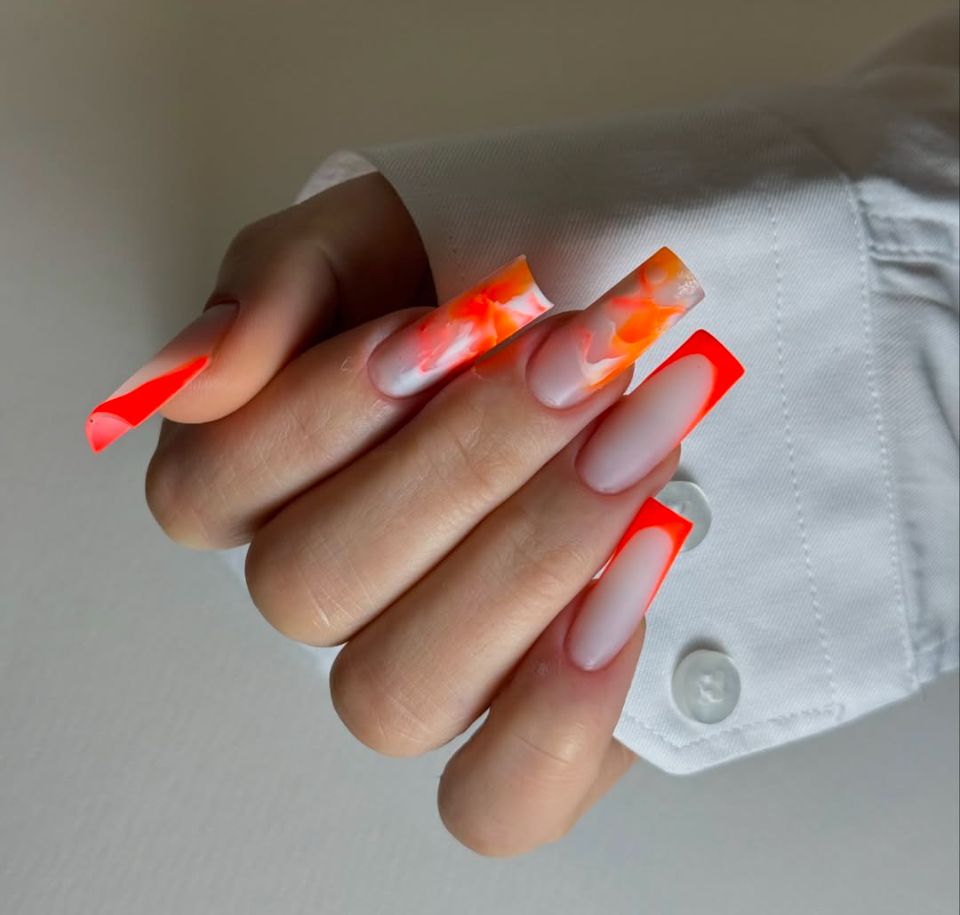 If you’re someone who loves to express yourself through color, acrylic square nails give you endless opportunities. Bright hues like neon orange, electric blue, hot pink, and lime green pop even more when shaped with a square tip. The flat edge helps emphasize the boldness of each color, making your nails a true statement piece.