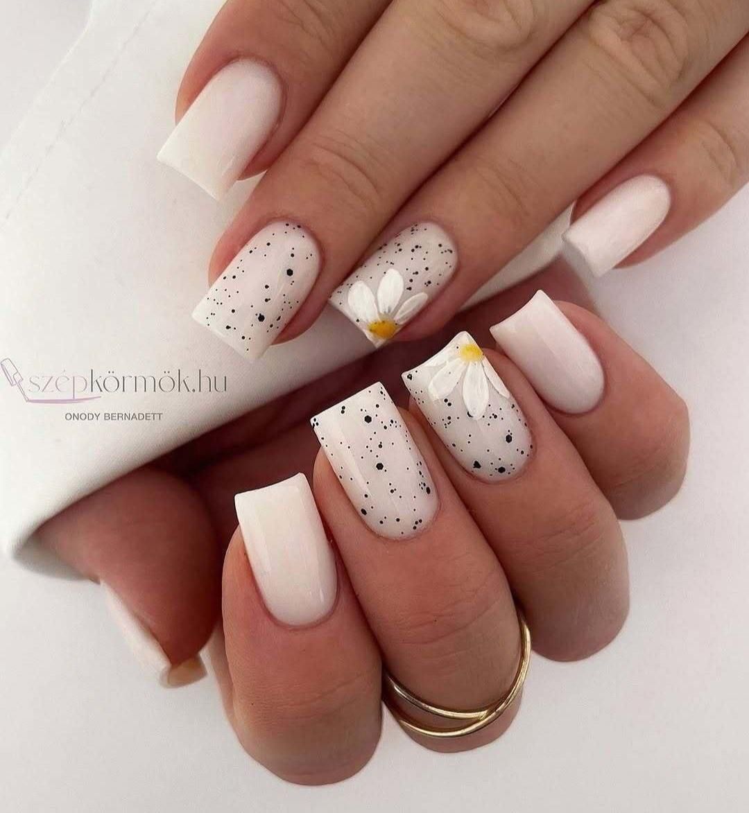 Daisies are one of the easiest and most charming designs to begin with. Using a white polish for the petals and a yellow dot in the center, you can create cute daisy patterns with just a toothpick or dotting tool. These designs work wonderfully on nude or pastel bases, making them suitable for daily wear and casual settings.