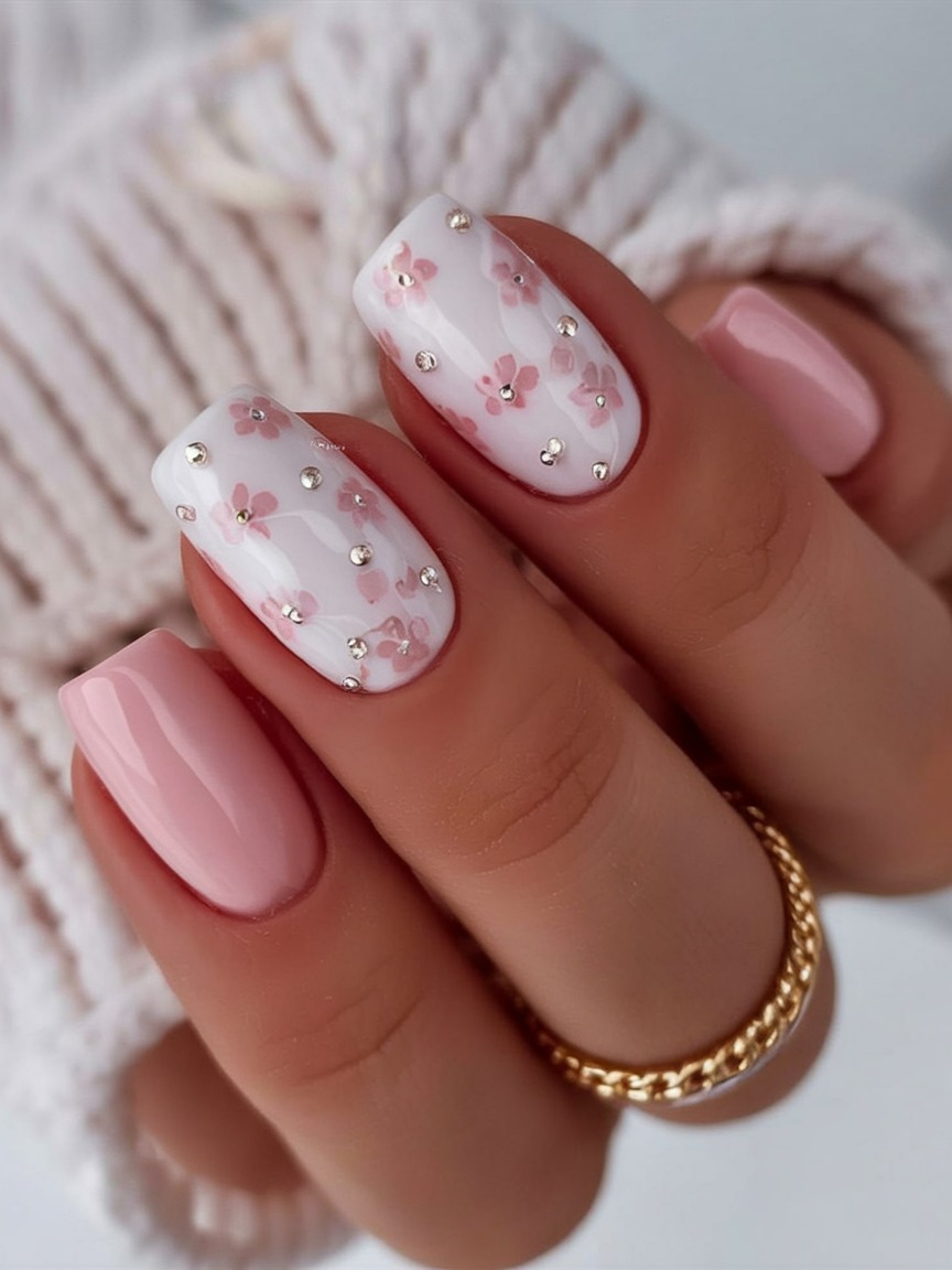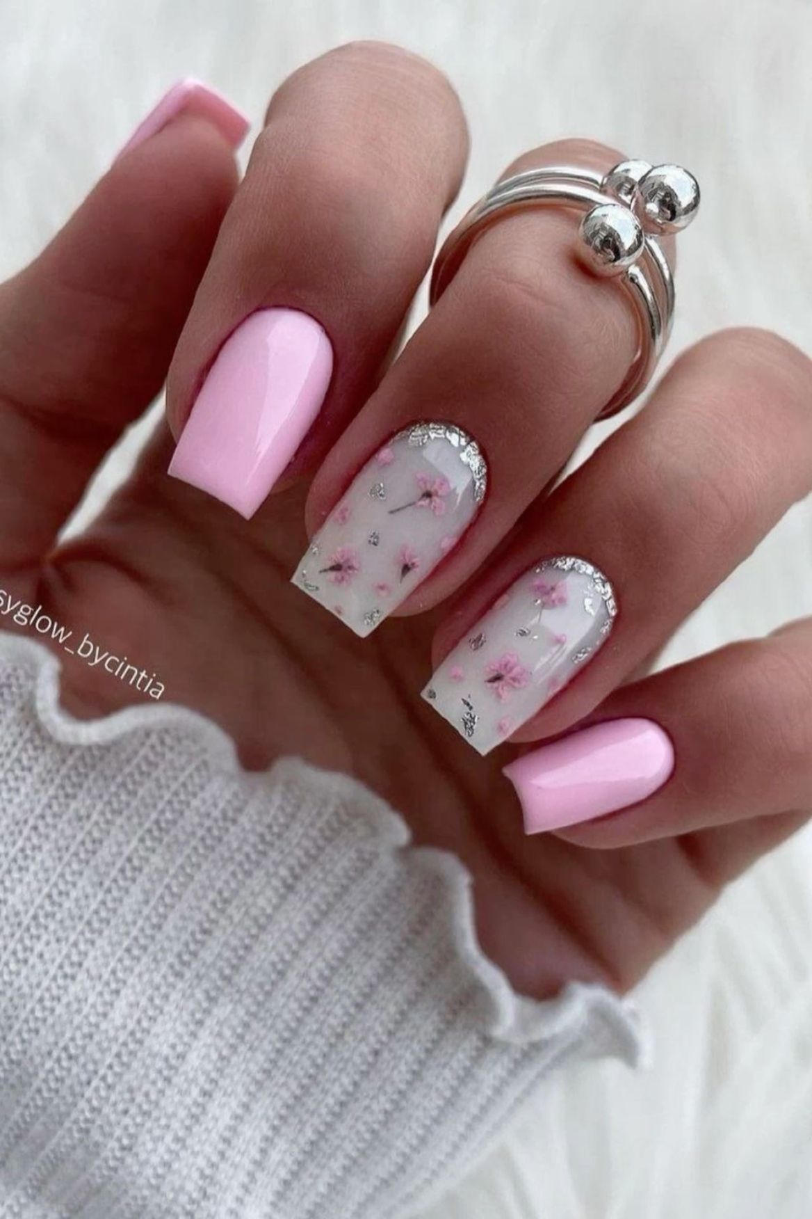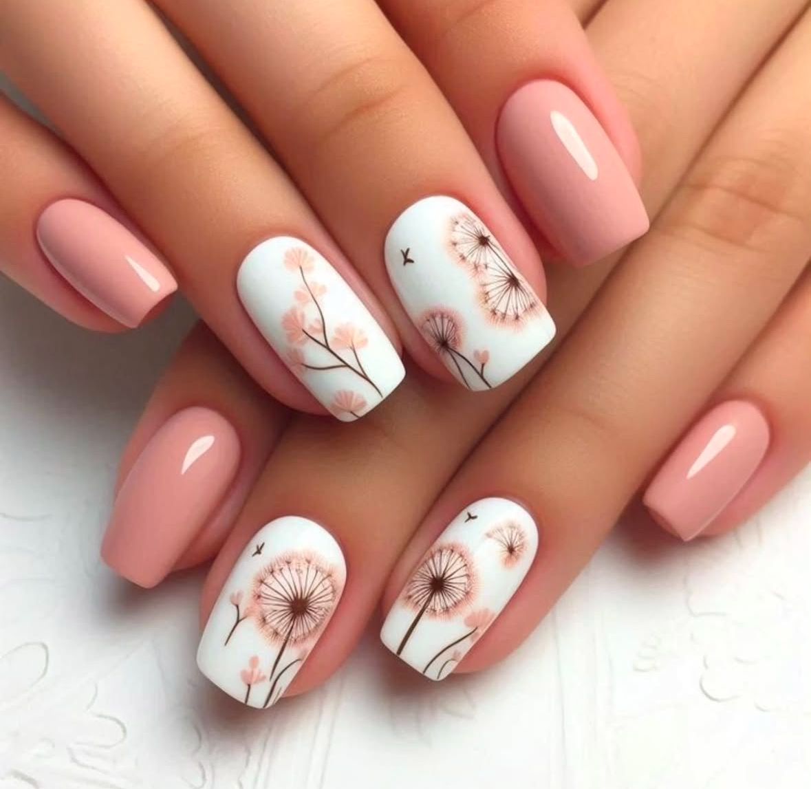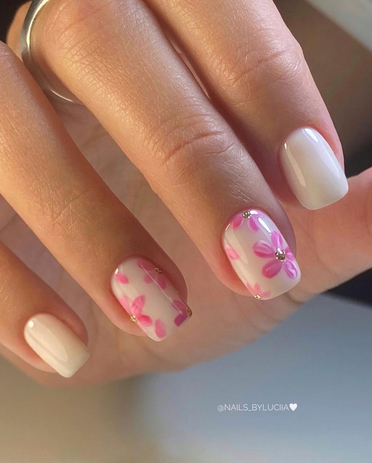 Modern nail artists love playing with abstract shapes and negative space to reinterpret traditional floral designs. Think oversized petals, asymmetrical placements, and watercolor effects. These designs are perfect for trendsetters who want a unique twist on the floral theme.
