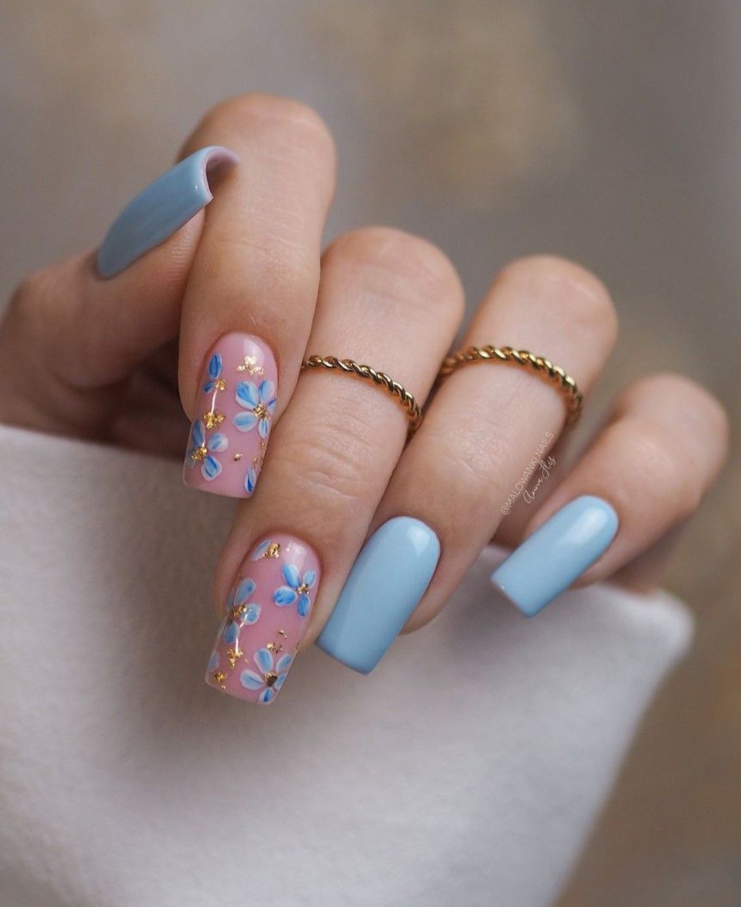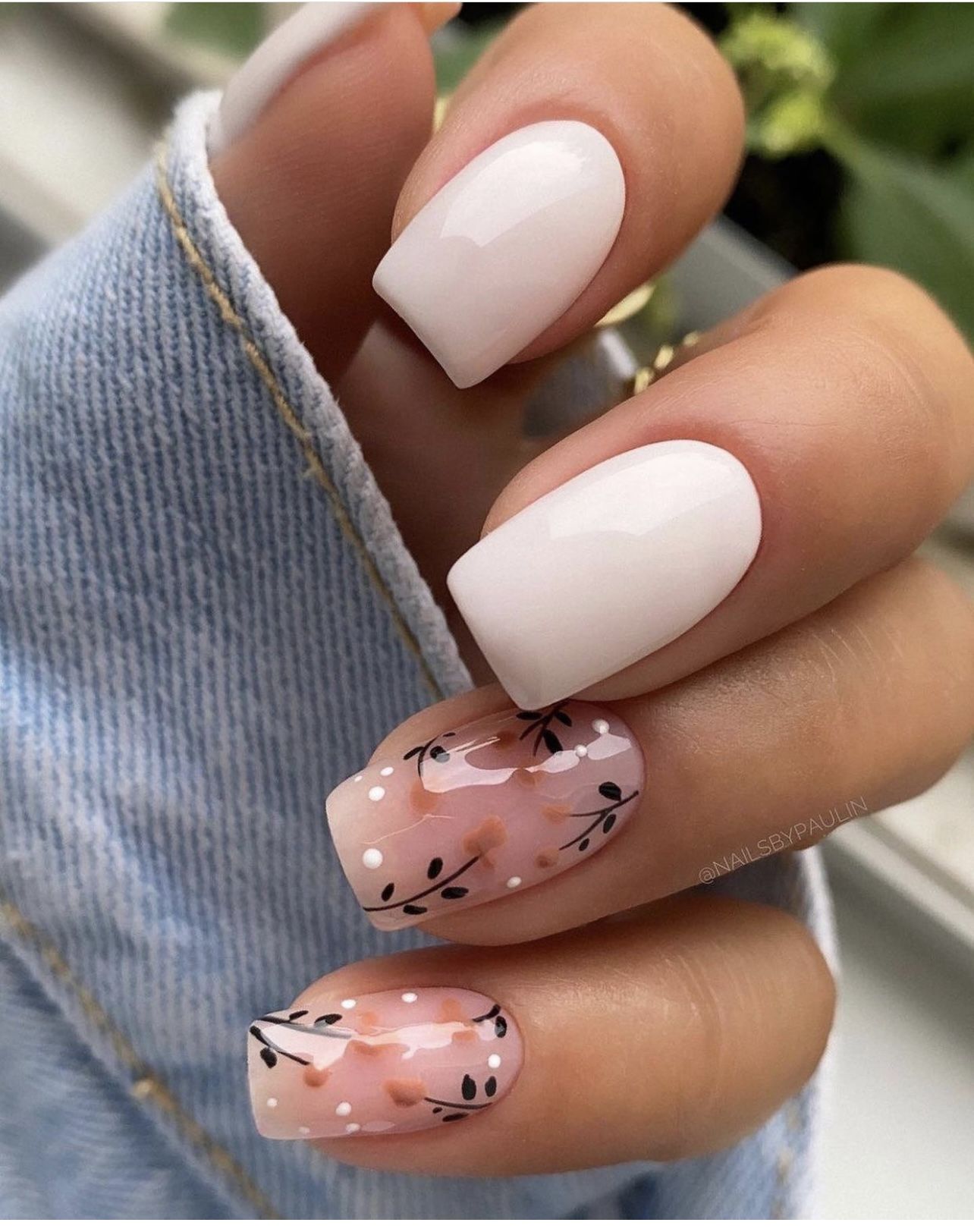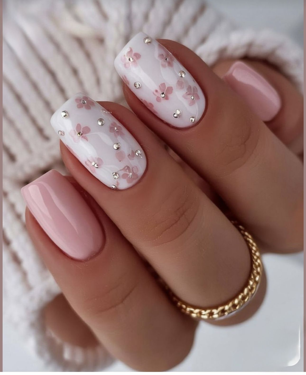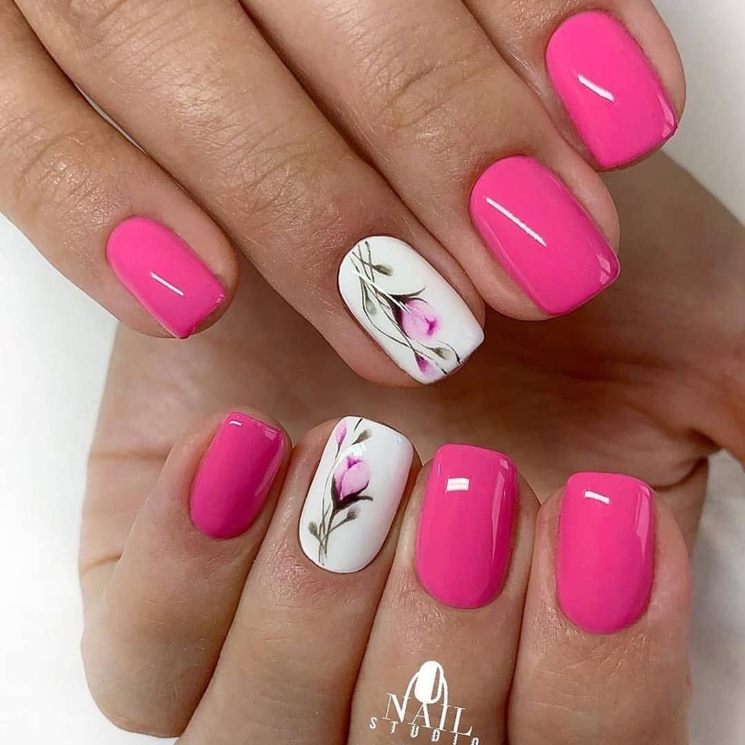 Modern nail artists love playing with abstract shapes and negative space to reinterpret traditional floral designs. Think oversized petals, asymmetrical placements, and watercolor effects. These designs are perfect for trendsetters who want a unique twist on the floral theme.