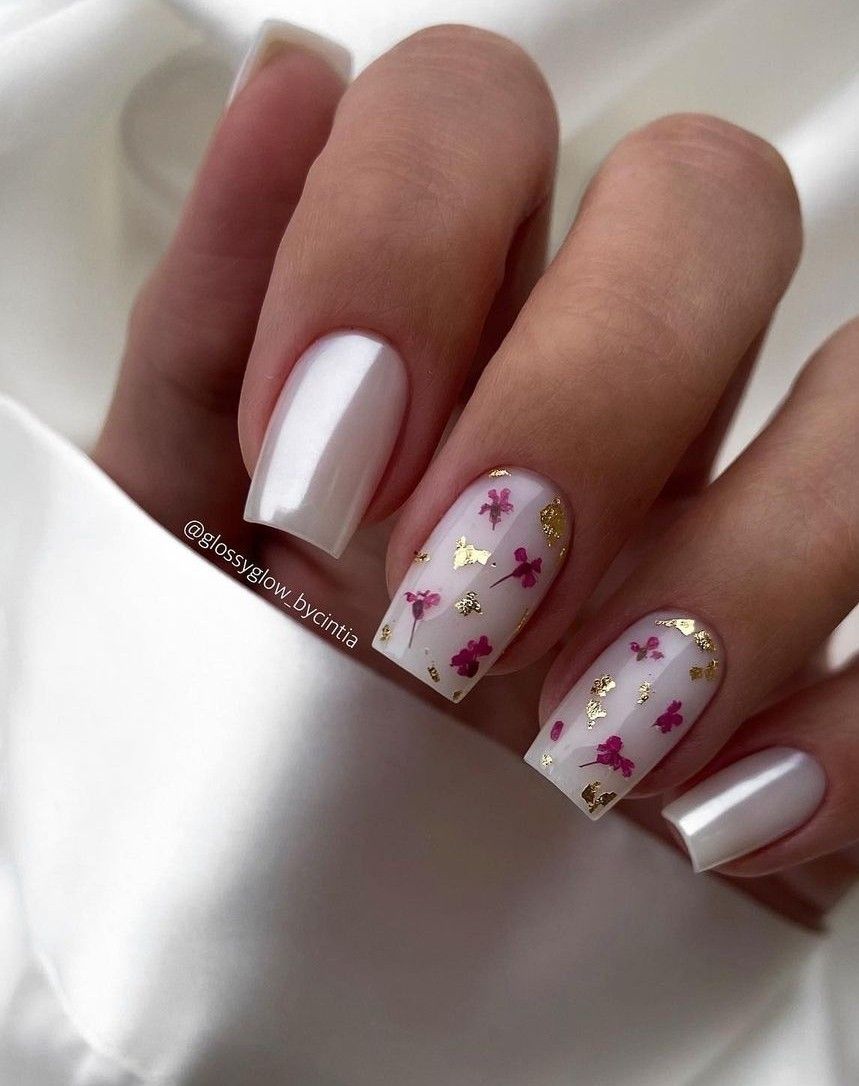 For brides or wedding guests, floral nails can be the perfect finishing touch. Soft white blooms, sheer bases, and delicate embellishments like rhinestones or gold foil offer a polished and romantic look that complements any formal attire.