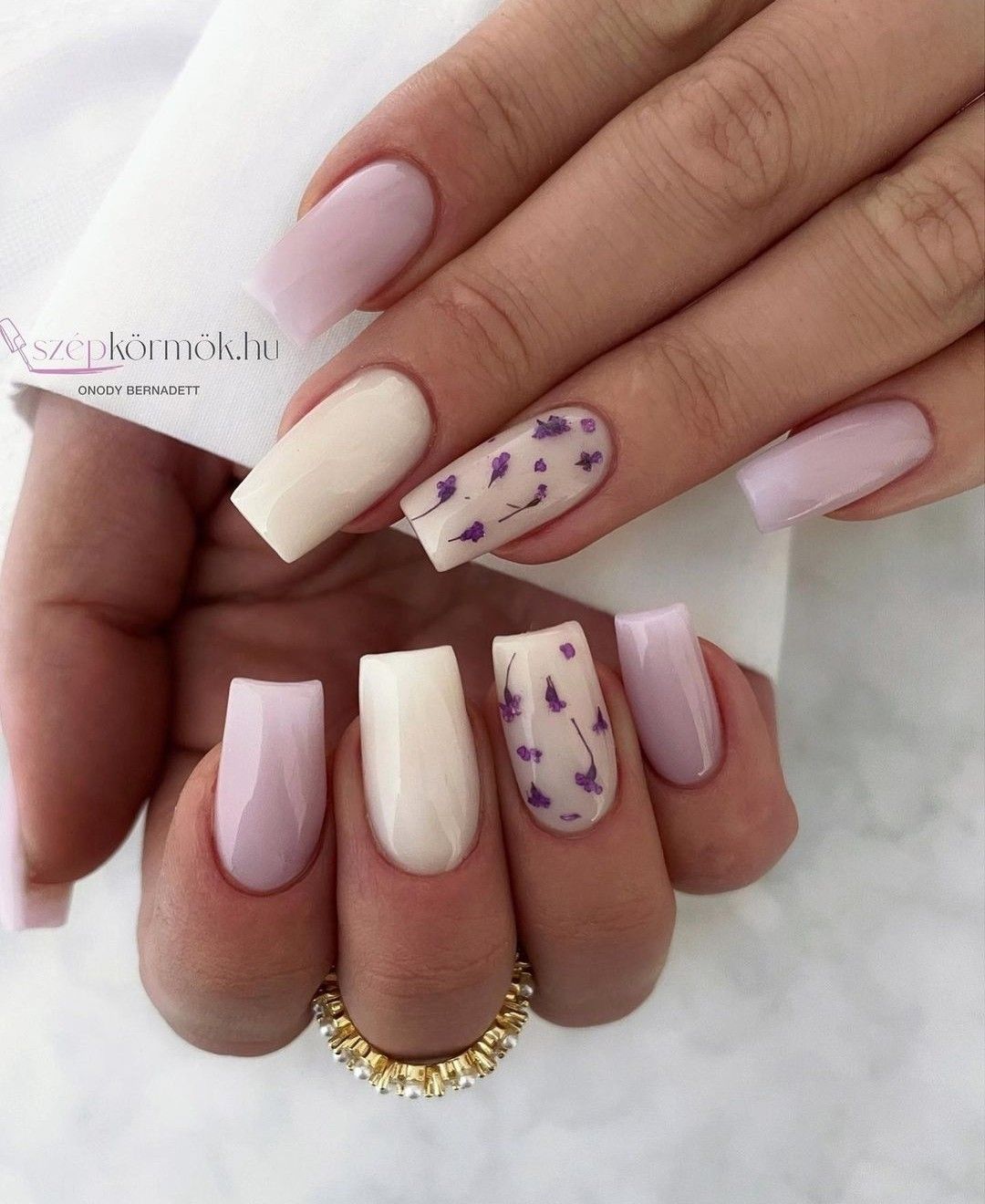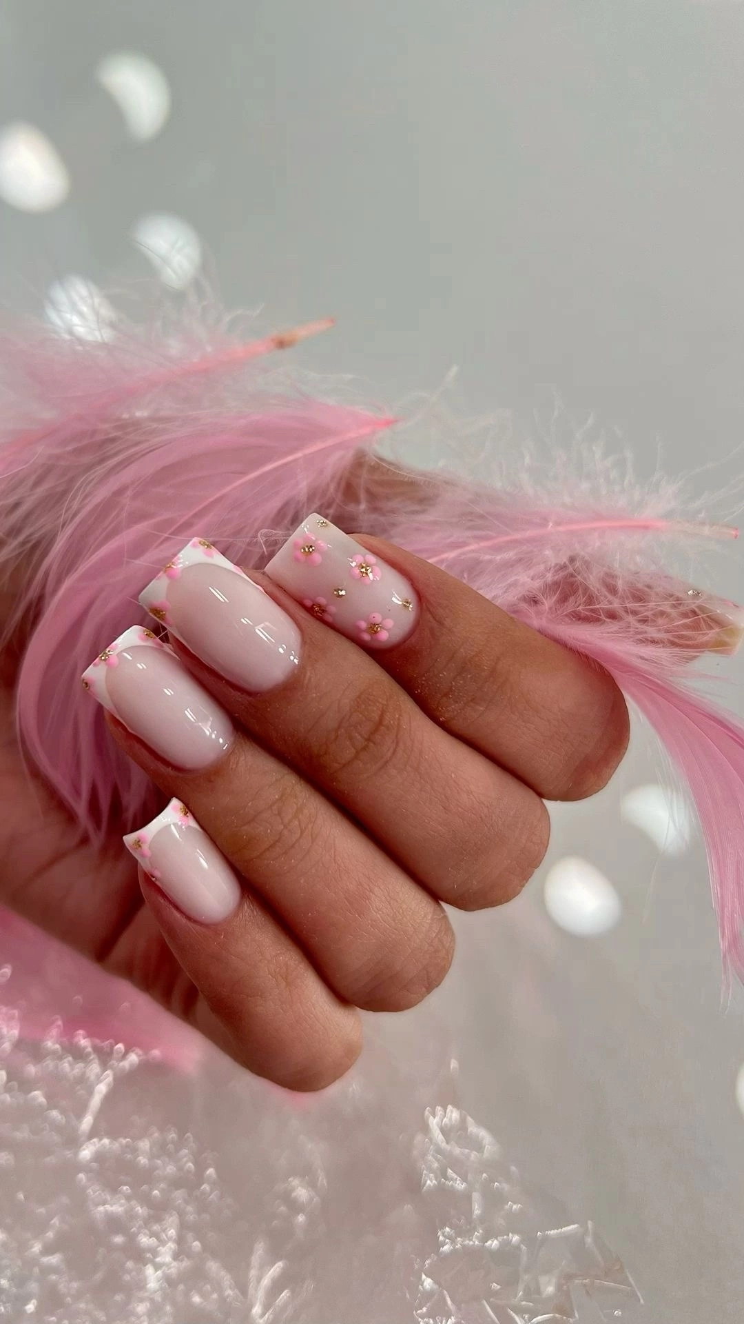 Pastel flower tips are another beginner-friendly option that adds a subtle floral accent without overwhelming the nail. Think of it as a floral twist on the classic French manicure—just replace the white tips with soft lilac, mint, or blush pink petals. It’s a low-risk, high-impact design that feels elegant and fresh.