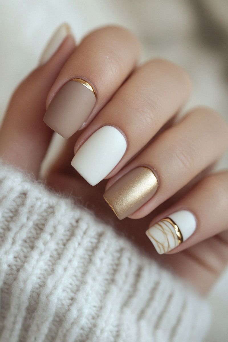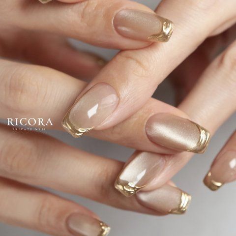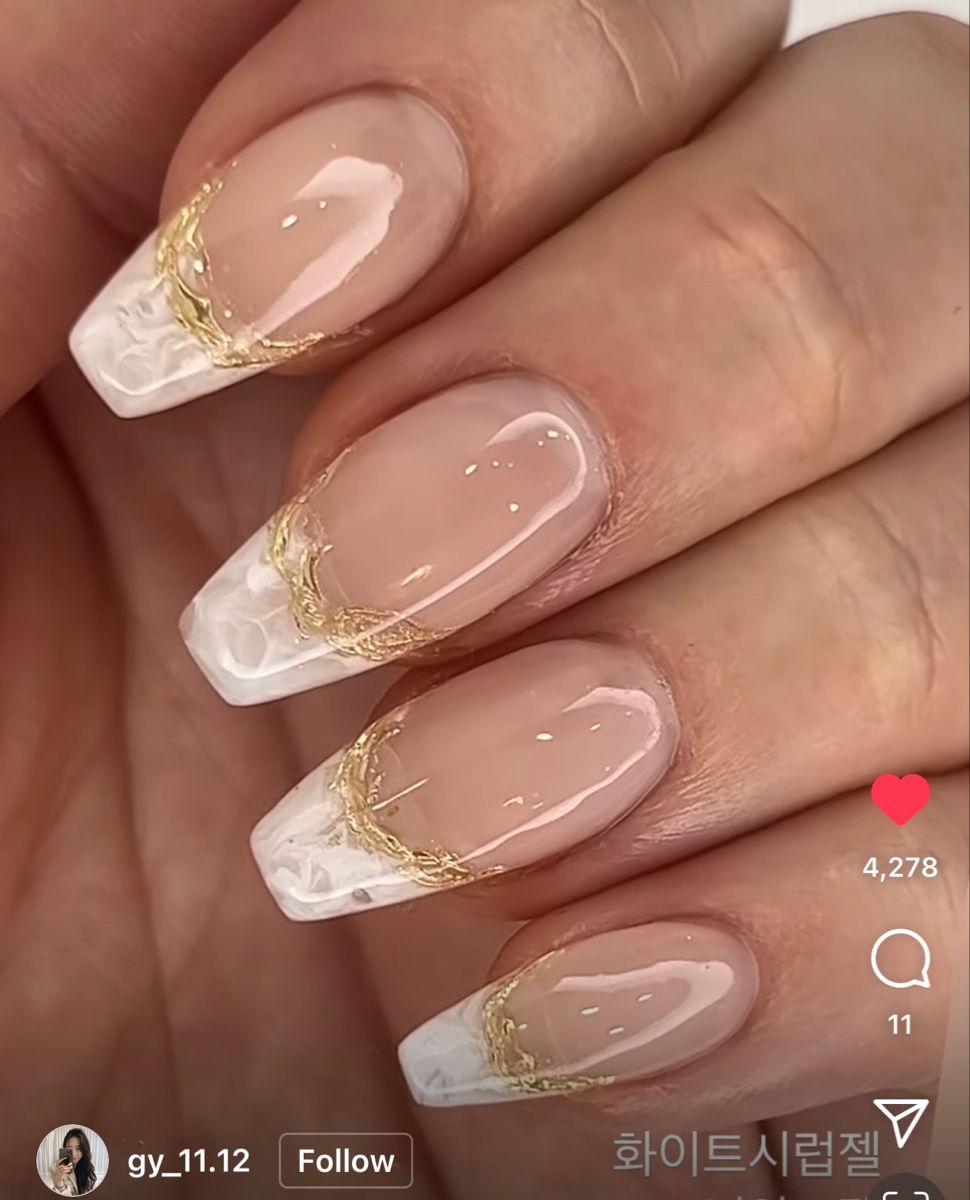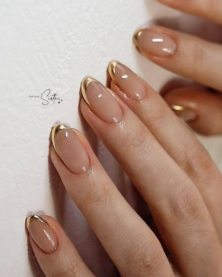 Perfect for office wear or everyday glam, this version features a soft nude base paired with a gold stripe in place of or along the traditional white tip. The result is understated elegance that works with any skin tone.