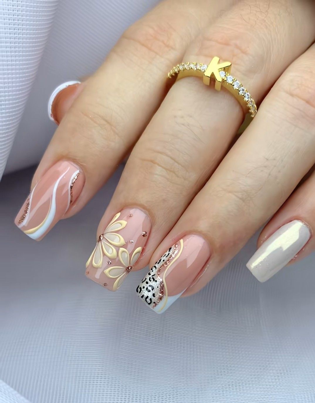 Love the barely-there look? A clear or sheer base paired with diagonally painted gold lines gives you a modern and minimalist finish. It’s perfect for those who prefer clean, artistic designs over bold colors.