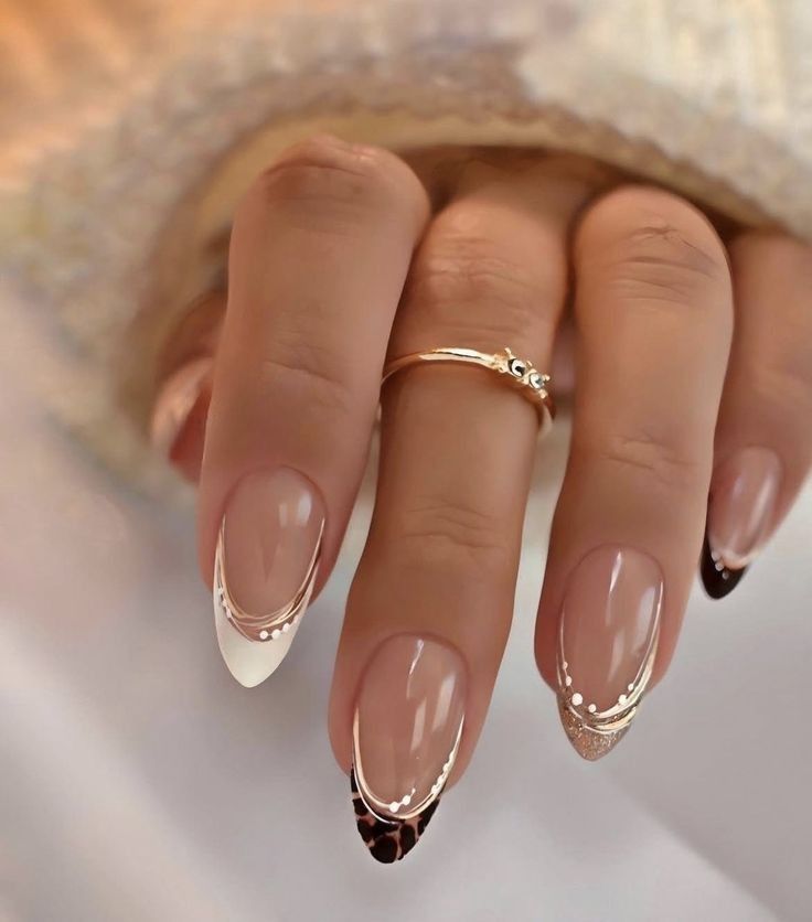Think navy, deep burgundy, or forest green French tips adorned with gleaming gold. The contrast between the dark base and the metallic accent creates a powerful, dramatic effect ideal for evening events or special occasions.
