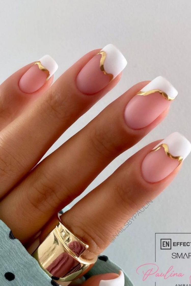 35+ Stunning French Nail Designs with Gold Line Embellishments
